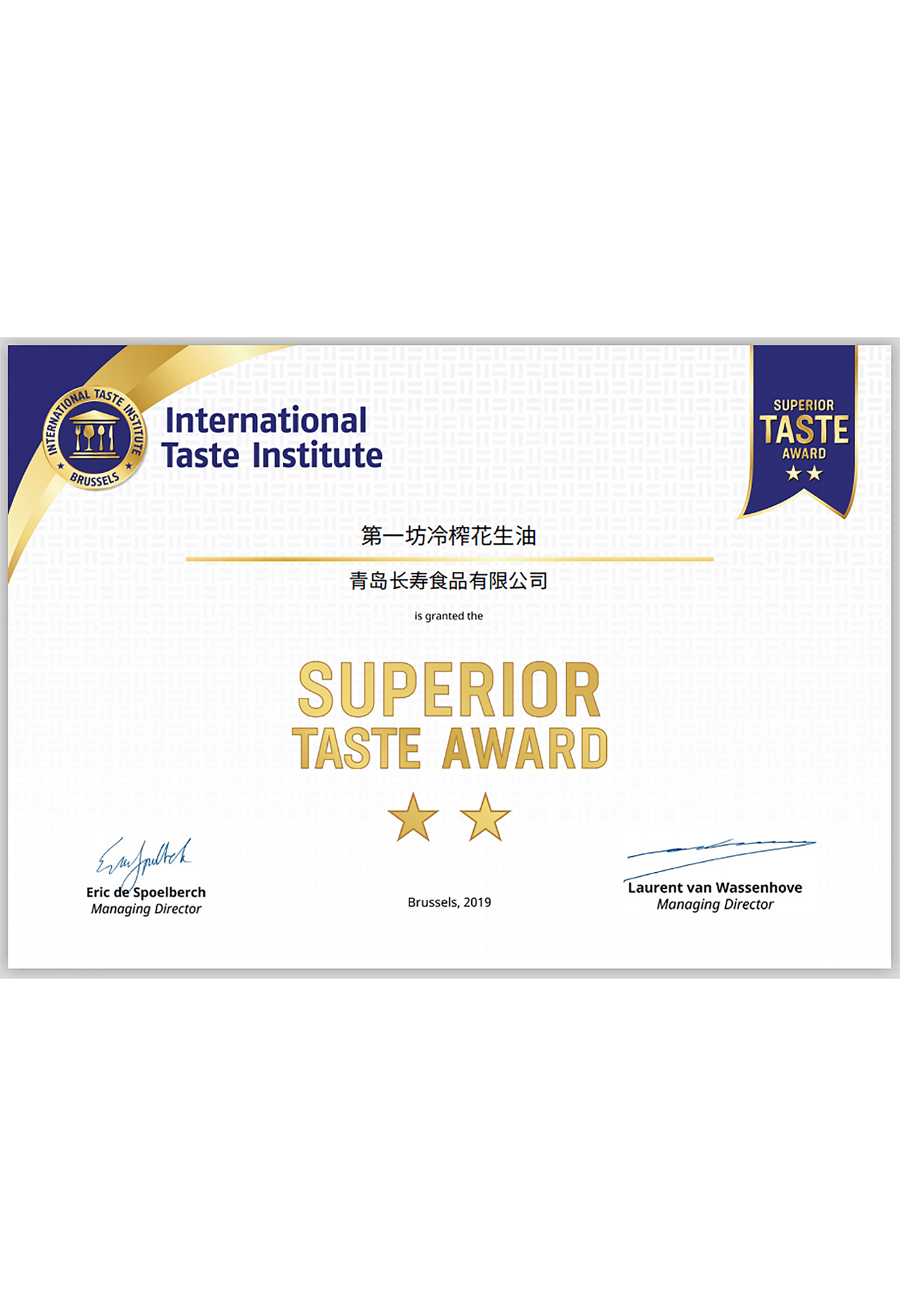 2019年6月 榮獲iTQi美味獎(jiǎng)?wù)?;,同時(shí)還榮獲中國(guó)好糧油示范企業(yè)