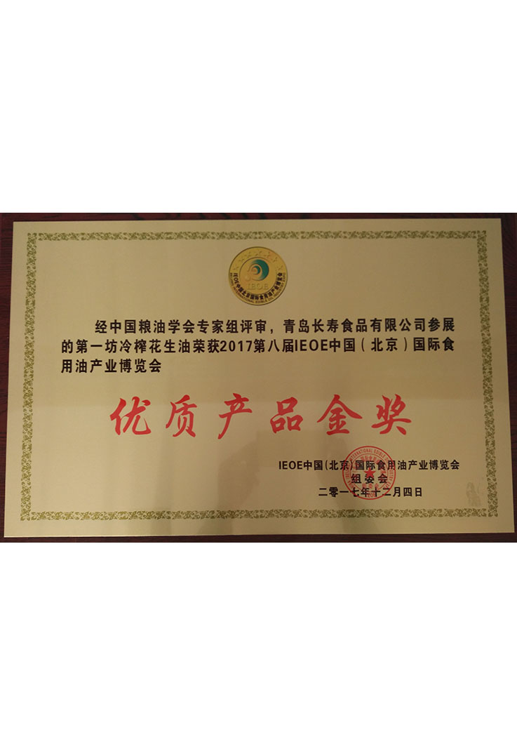 2017年12月 獲得中國(guó)糧油學(xué)會(huì)授予的“優(yōu)質(zhì)產(chǎn)品金獎(jiǎng)”